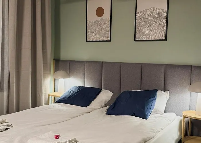 Die Gäste können in diesen Apartments Selbstversorgereinrichtungen nutzen, einschließlich einer Küchenzeile, und ihre Mahlzeiten in einem Essbereich und einem Essbereich im Freien genießen. Von diesen Unterkünften sind es 10 Autominuten bis zum internationalen Flughafen Warschau-Frédéric-Chopin.